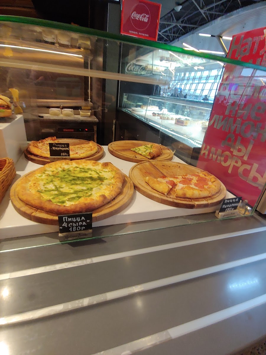 As you step inside, you'll be greeted by a delightful menu that is a fusion of Western comfort food and traditional Russian flavors. Craving a satisfying bite? The inviting scent of their freshly baked pizzas will draw you in—imagine a perfectly crispy crust topped with rich tomato sauce, gooey mozzarella, and your choice of exquisite toppings, beckoning like a warm hug within the cool airport space. For those with a sweet tooth, their array of baked goods promises to please: from flaky pastries to decadent cakes, each treat is made with love and attention to detail.